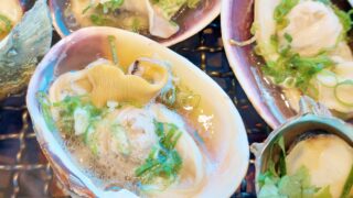 アツアツの焼き貝、秘伝のタレで。
